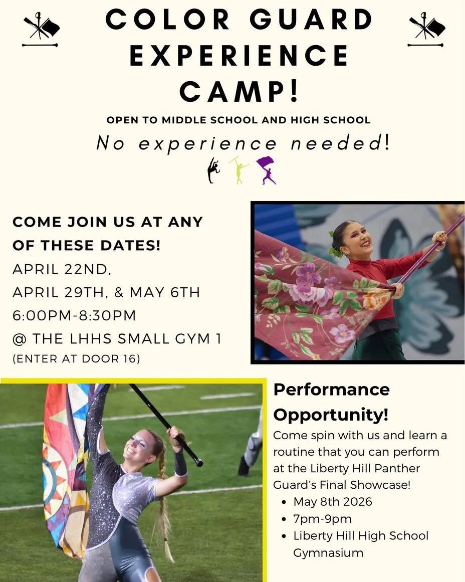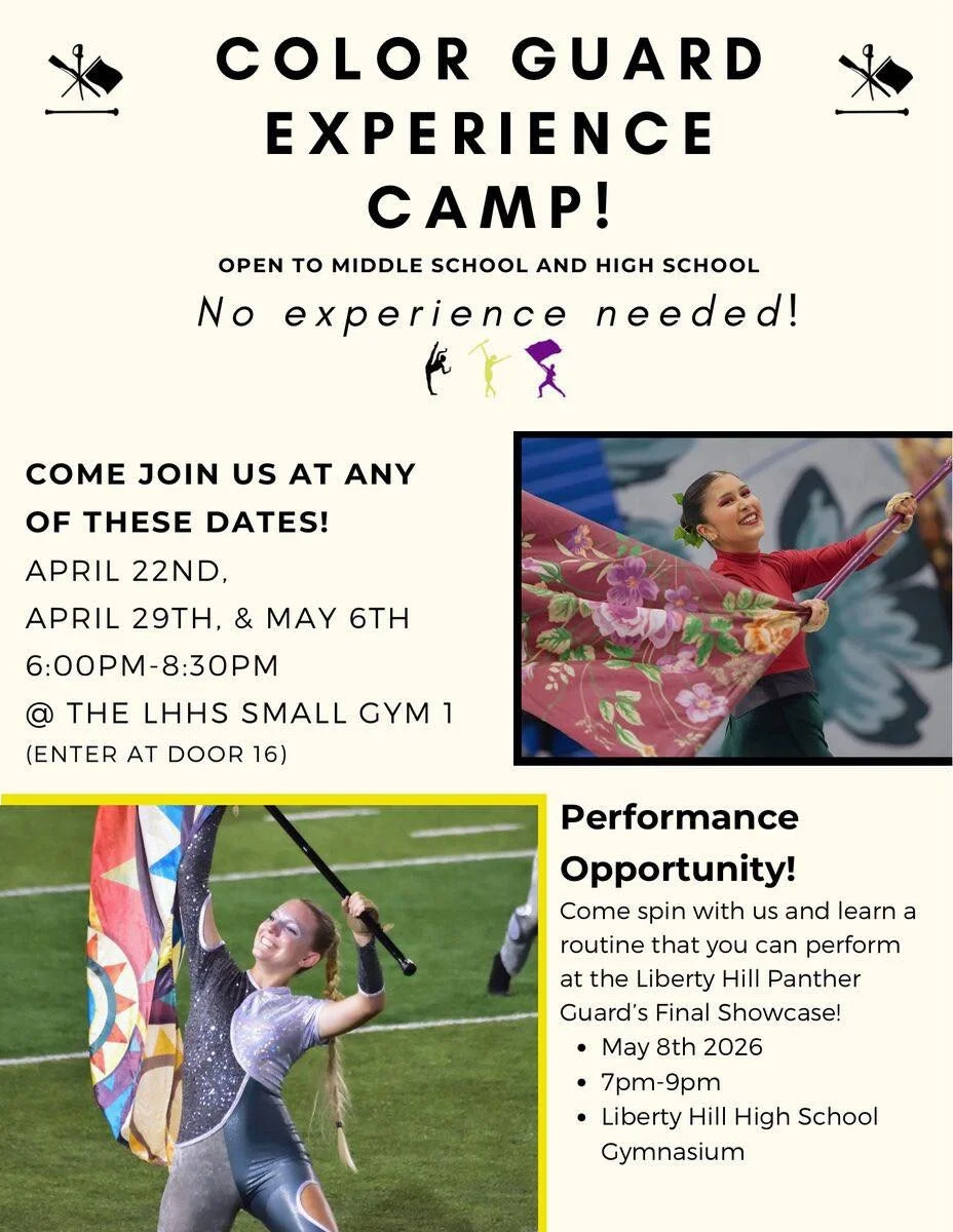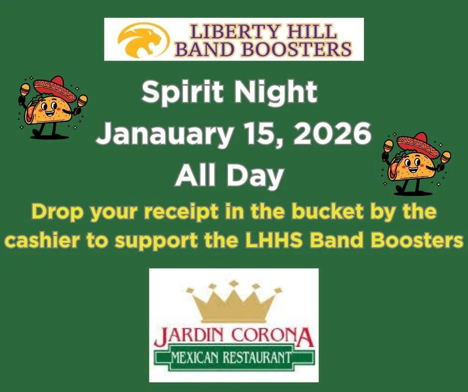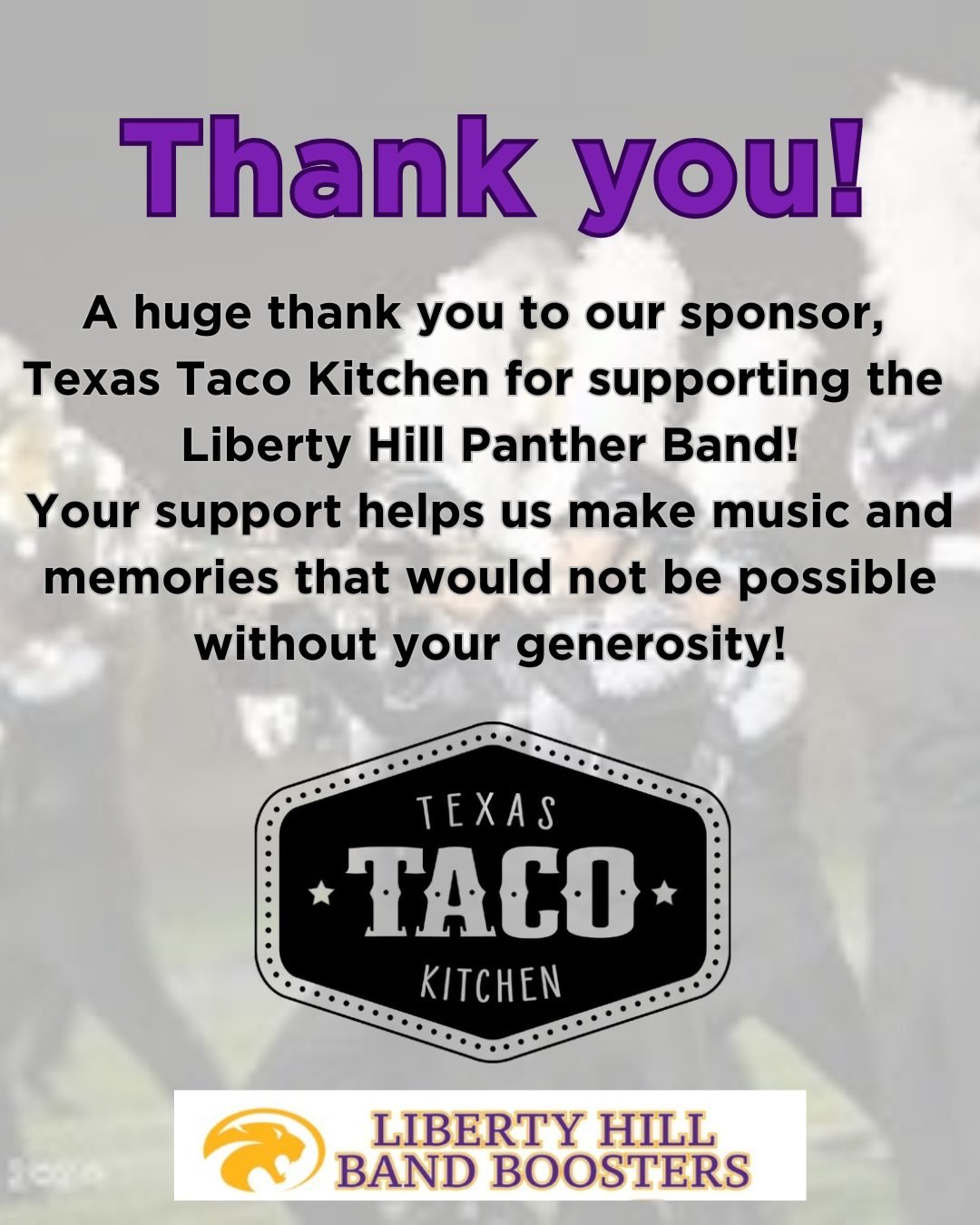 Make a tax-deductible donation today with the button below. Thank you for your support of the Liberty Hill Panther Band & Guard!
