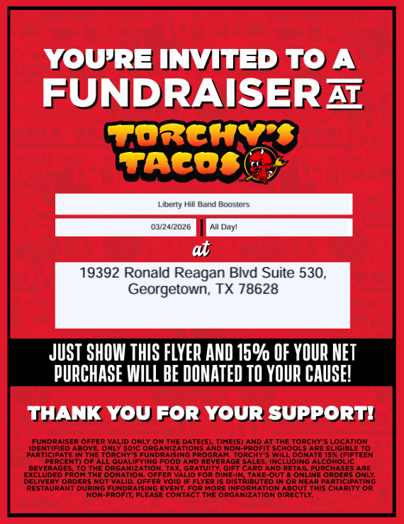 Please ensure you SHOW THE FLYER for the band to get credit when you order these tasty treats.